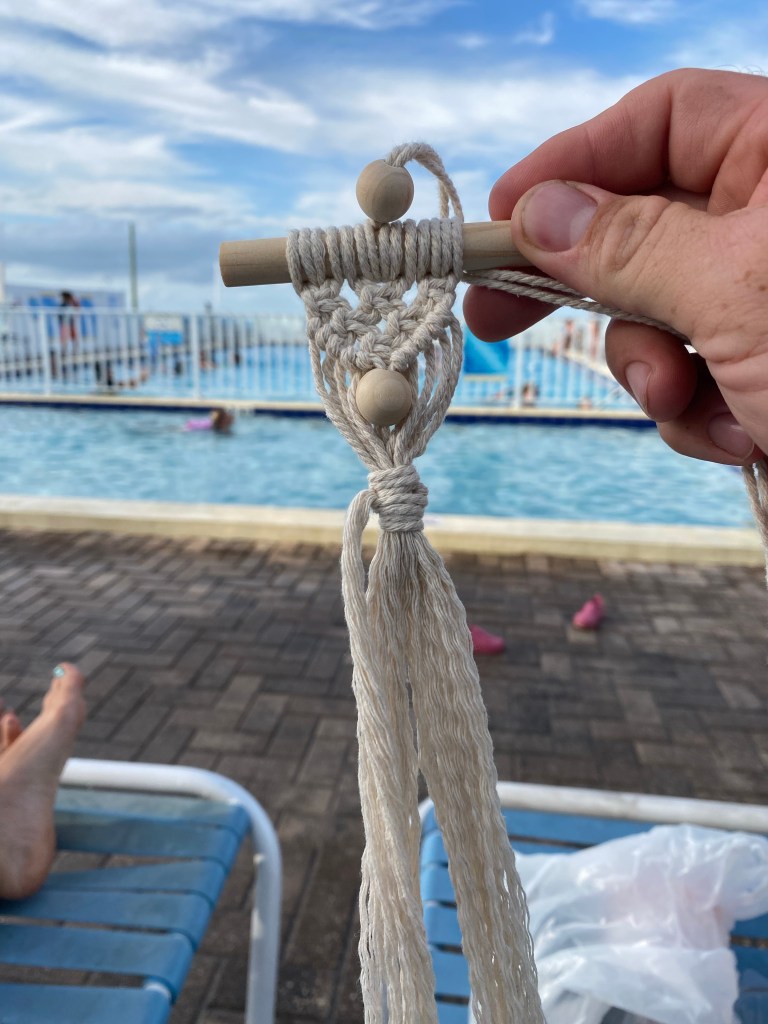 If you’ve never done macrame, it’s actually quite a fun activity and semi-time consuming depending upon the size of craft. This took about 20 minutes while my wife was still on step one and in the middle of a phone conversation! However, macrame yields quite amazing looking wall decor that is very pleasing to the eye.
